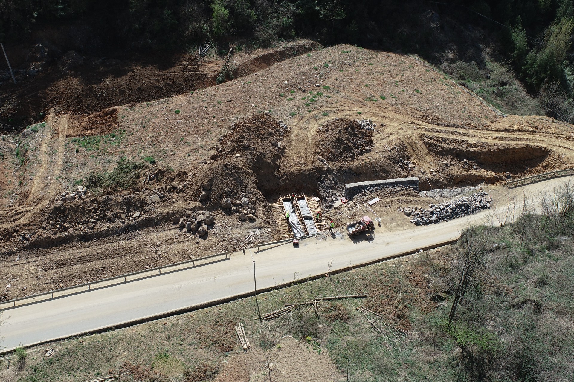 目前正在進行主線路基開挖,完成蓋板涵預制85塊,占總數(shù)52%;擋防工程5023方,占總數(shù)31%;土石方開挖6.5萬方,占總數(shù)12%,利用土石方1.5萬方,占總數(shù)11.5%;場鎮(zhèn)段400米右幅底層6cm油面鋪設。